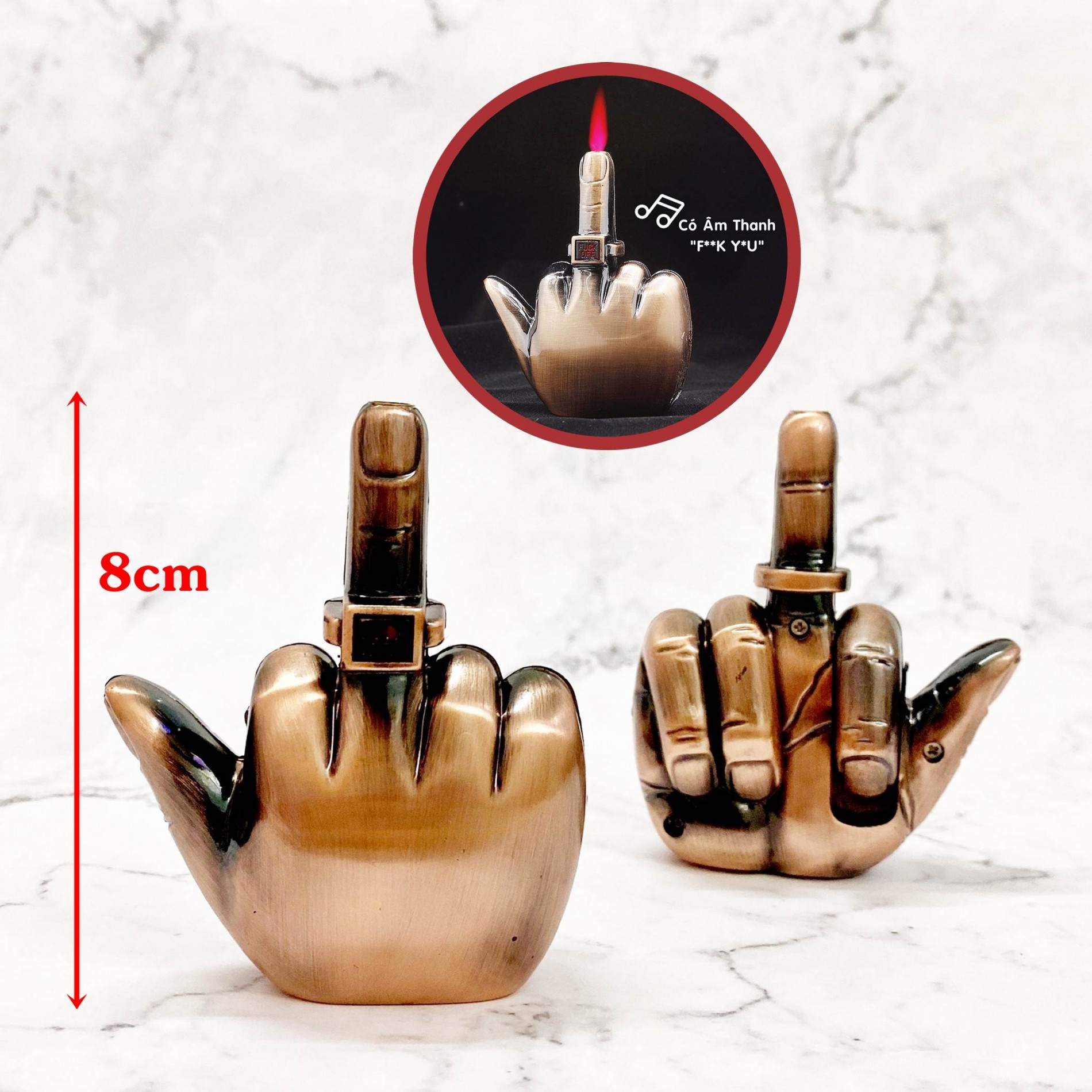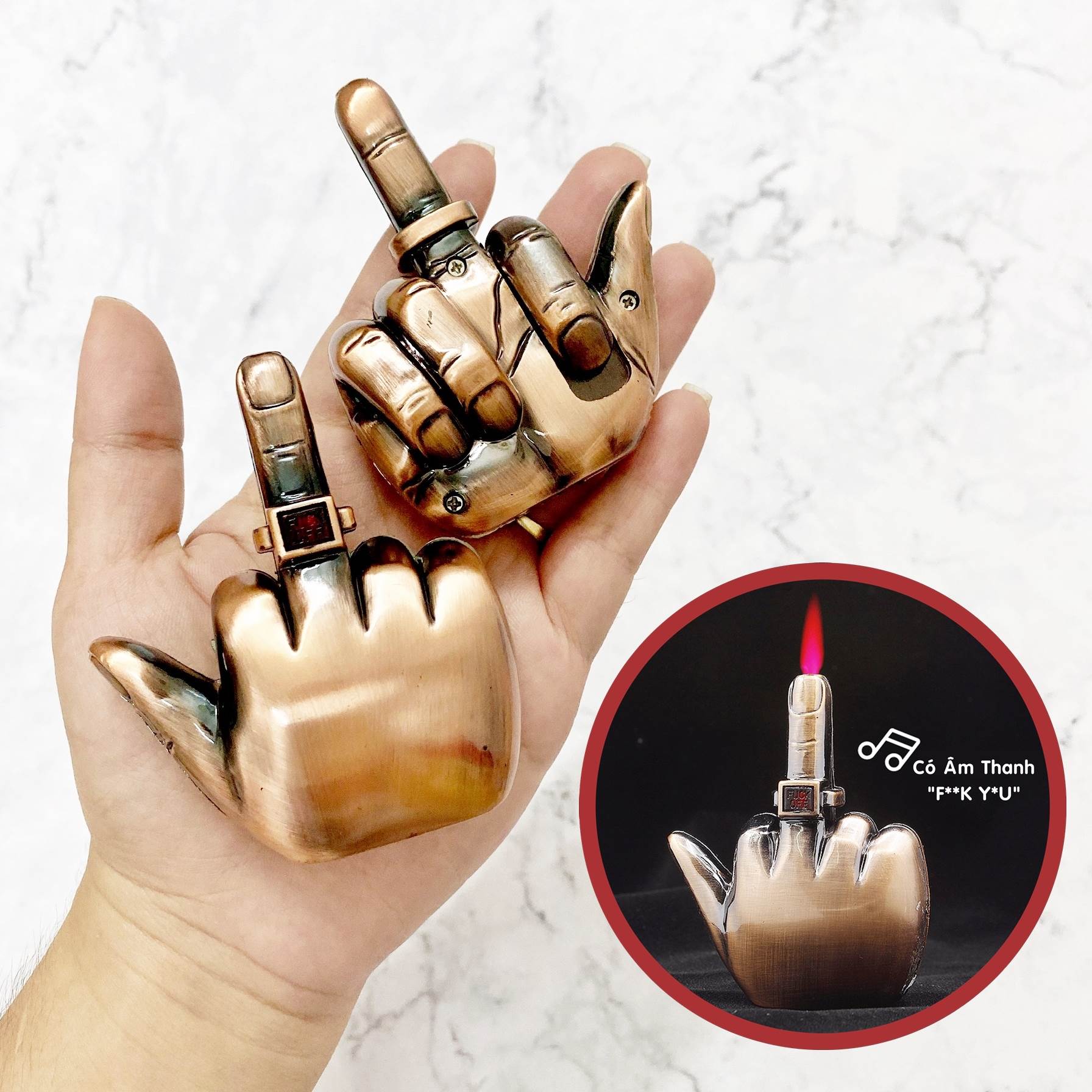 - Kiểu dáng độc đáo: Với hình dáng ngón tay vô đối, chiếc bật lửa này không chỉ là công cụ mà còn là một vật trang trí độc đáo, thể hiện cá tính mạnh mẽ và khiếu hài hước của người sở hữu.