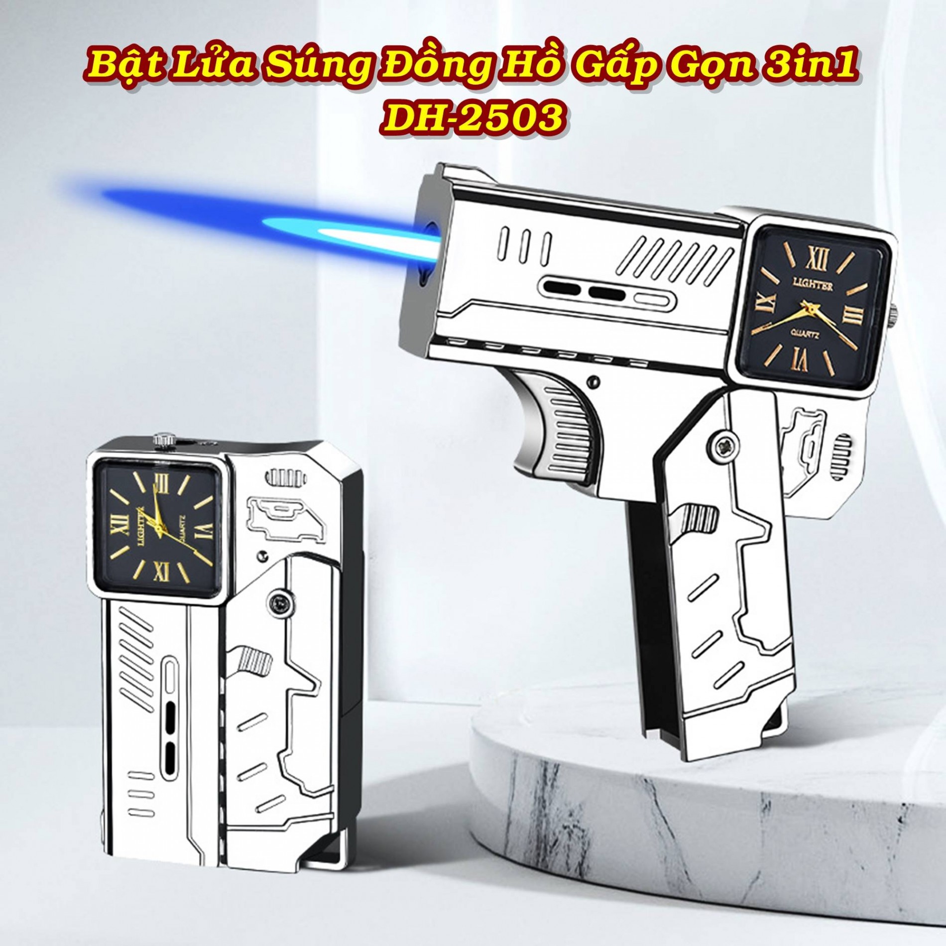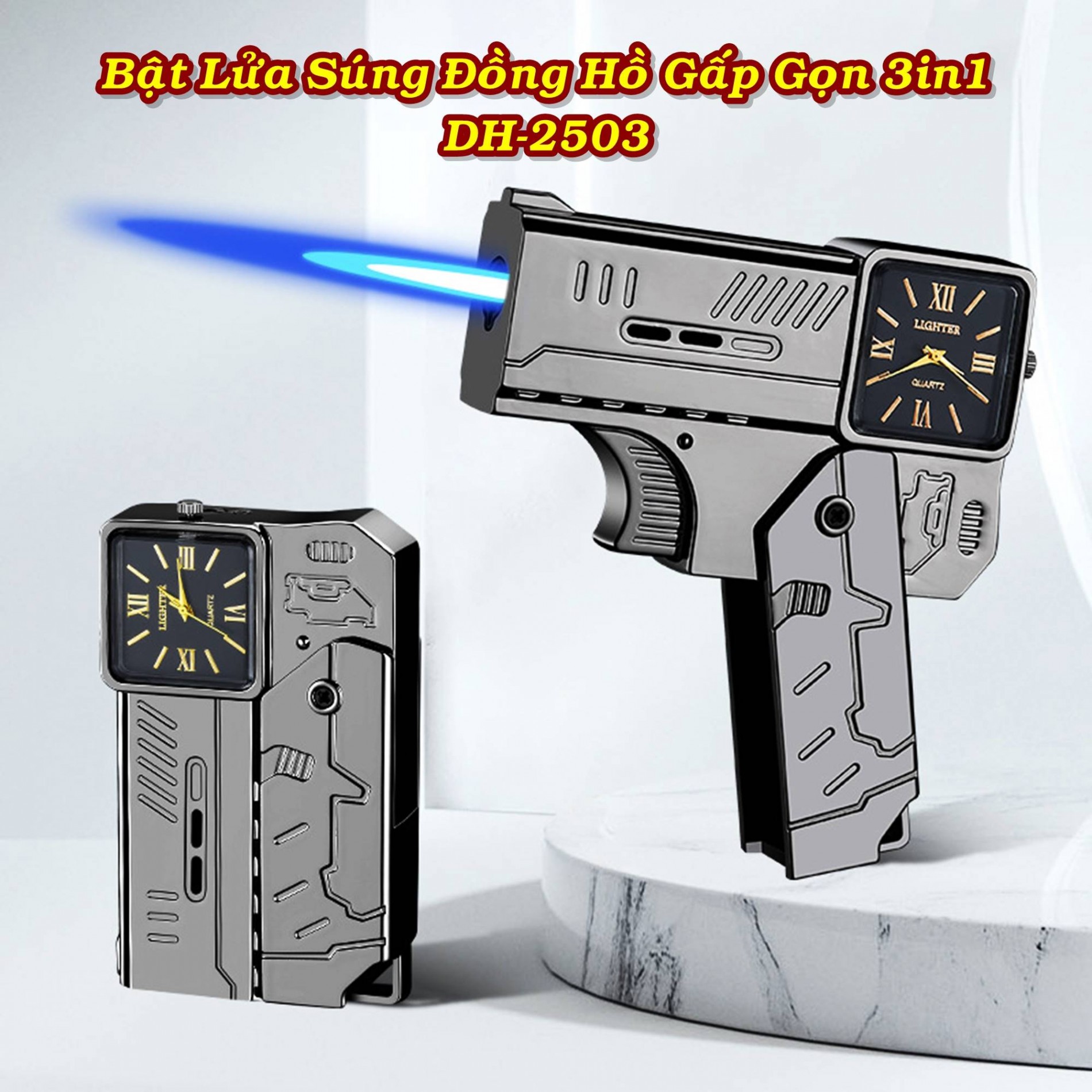 Khám Phá Bật Lửa Kiêm Đồng Hồ Để Bàn Hình Súng Độc Đáo – Nâng Tầm Phong Cách Của Bạn!