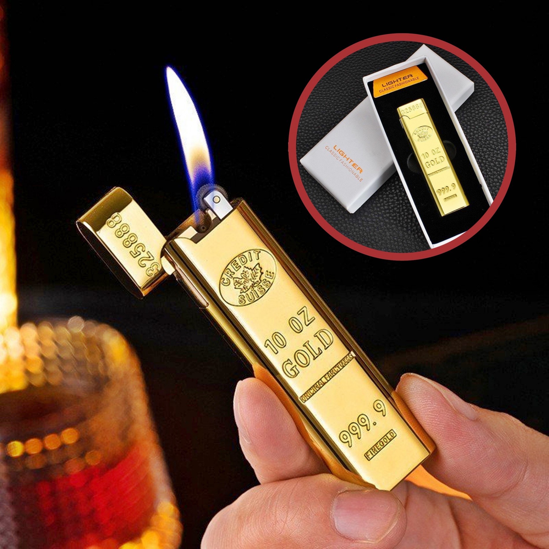 Sở hữu sự sang trọng: Bật lửa hình thỏi vàng 9999 dài dùng gas lửa thường