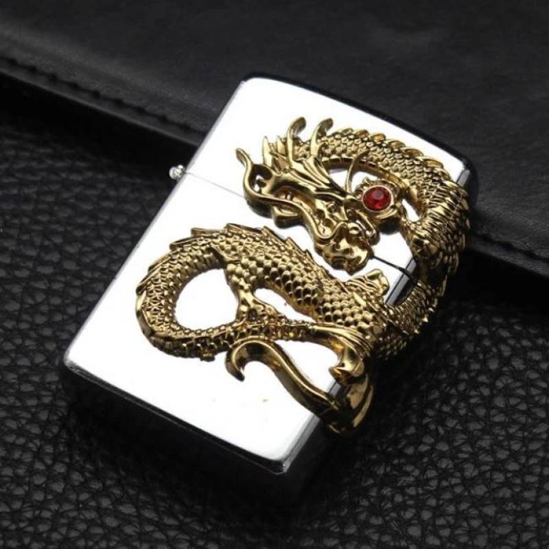 Ngay từ cái nhìn đầu tiên, bạn sẽ bị cuốn hút bởi hình ảnh rồng uy mãnh được khắc nổi tinh tế trên nền vỏ Zippo cao cấp. Rồng, biểu tượng quyền lực, sức mạnh và sự thịnh vượng trong văn hóa Á Đông, được tái hiện sống động qua từng đường nét chạm khắc tỉ mỉ. Đặc biệt, viên ngọc đỏ rực rỡ ôm trọn thân rồng càng tôn lên vẻ đẹp sang trọng, huyền bí và mang đến nguồn năng lượng tích cực cho người sở hữu.
